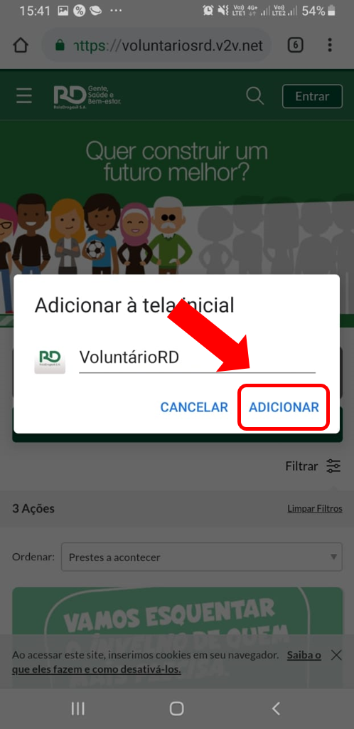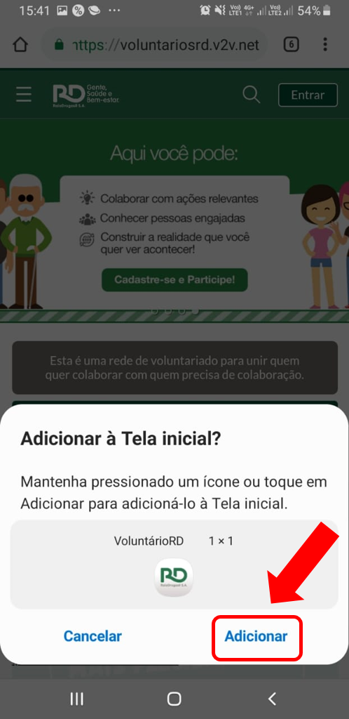 Como tornar a Plataforma de Voluntariado RD um aplicativo no meu celular?