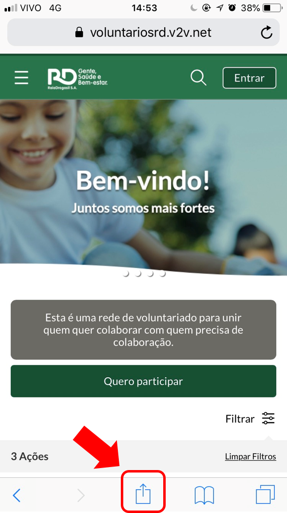 1. Entre no Safari e acesse o Portal através do link www.voluntariosrd.v2v.net